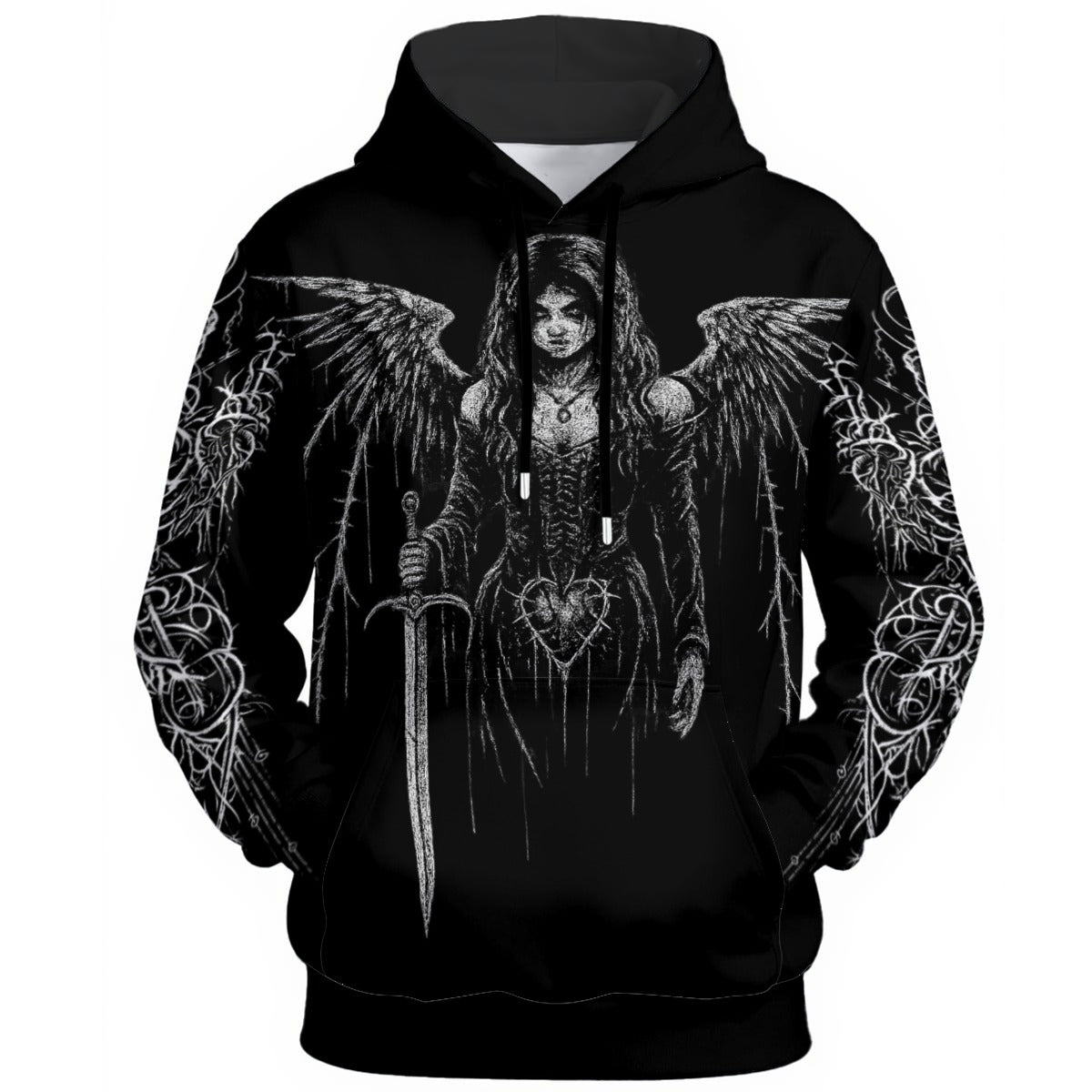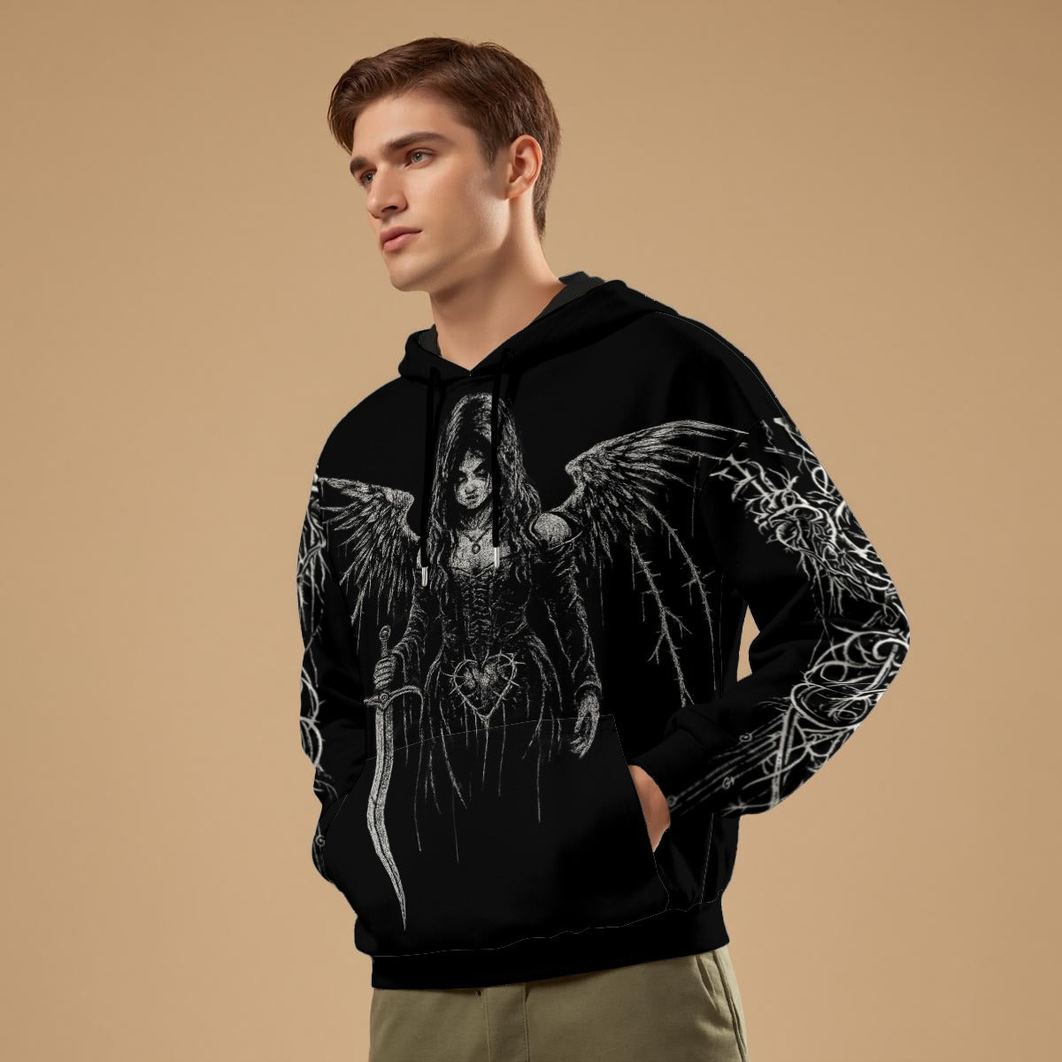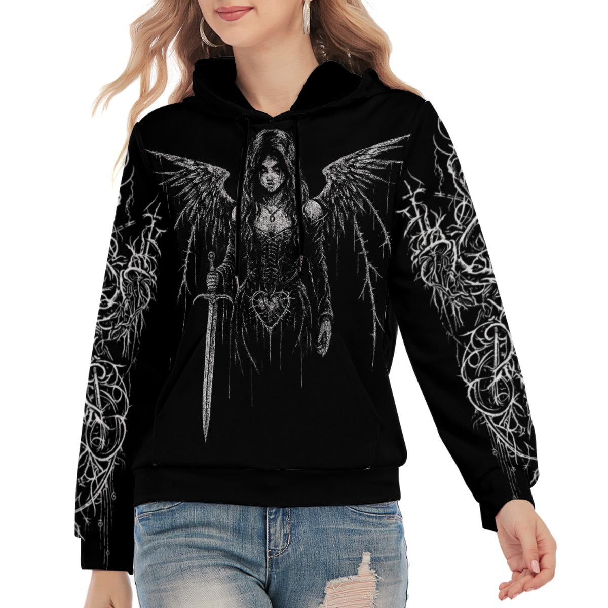 - Manga larga, patrón de bucle en el interior, con cordón, bolsillo canguro